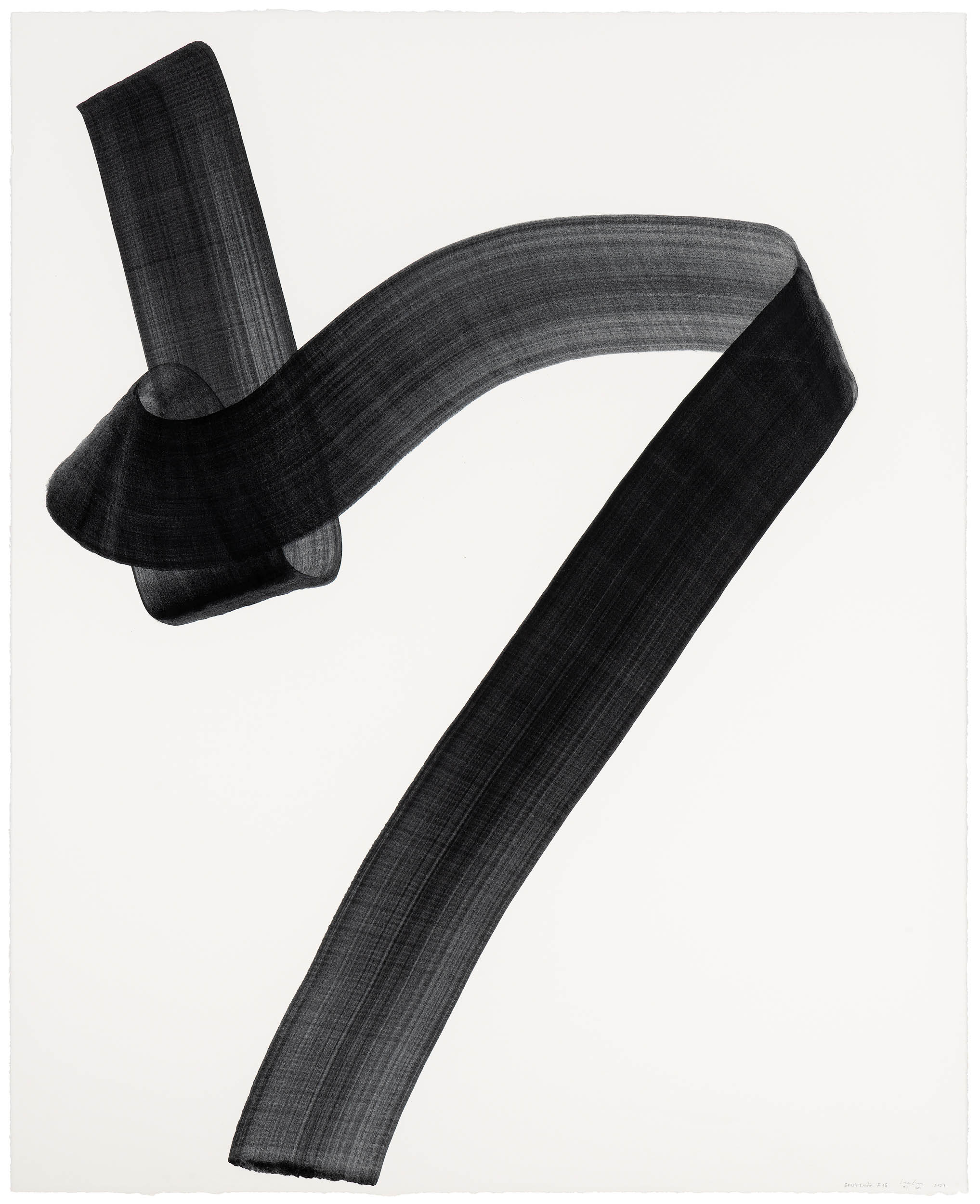 2000년대로 넘어오며 이배는 숯을 미디엄으로 하는 평면작업에 몰두하게 된다. 흑과 백으로 요약되는 이 작품들은 흰 바탕에 검은 선의 획이라는 단순한 구조를 띠고 있다. 흥미로운 것은 흰 바탕에 나타나는 검은 선의 획이 숯을 질료로 한 미디엄이라는 인상을 쉬이 주지 않는다는 점이다. 흰 바탕에 반사된 검은 선은 윤기를 머금은 듯 보이며, 종이에 먹으로 쓴 서체와 비견할 때 더욱 탄력 있는 물질감으로 드러난다. 이배가 표현한 검은 선의 획은 어떠한 형상인지 구체적으로 형용할 수 없고 동양의 서체라고도 확언할 수 없는 중간의 상태에 머물고 있다. (참고도판 2. 3) 이배는 모든 것을 태우고 난 검은 숯에는 빨려 들어갈 것만 같은 근원적인 힘이 스며 있다고 말한다. 나무로 태어나 자신의 몸을 태우고 숯이 되어 다시 땅으로 돌아가는 순환구조를 통해 작가와 그리고 우리를 시간에 대한 성찰로 이끌고 있다.