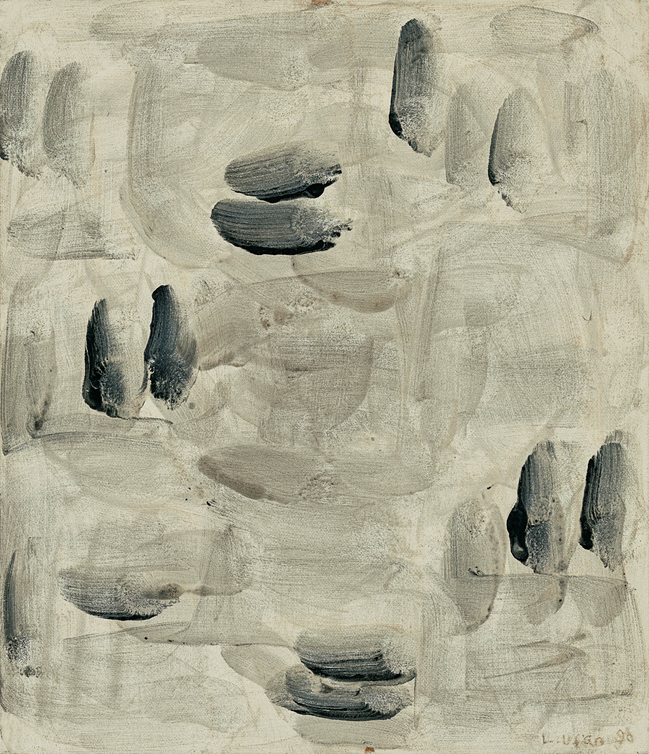비교적 초기에 몰두한 <점으로부터>와 <선으로부터>는 동양화의 기본 획을 연상시킨다. 일정하게 점과 선을 반복적으로 화면에 담아내면서, 이우환은 이들이 하나의 고정된 개념으로 수렴하지 않고 시간의 흐름에 따라 점점 옅어지는 과정을 보여주고 있다.